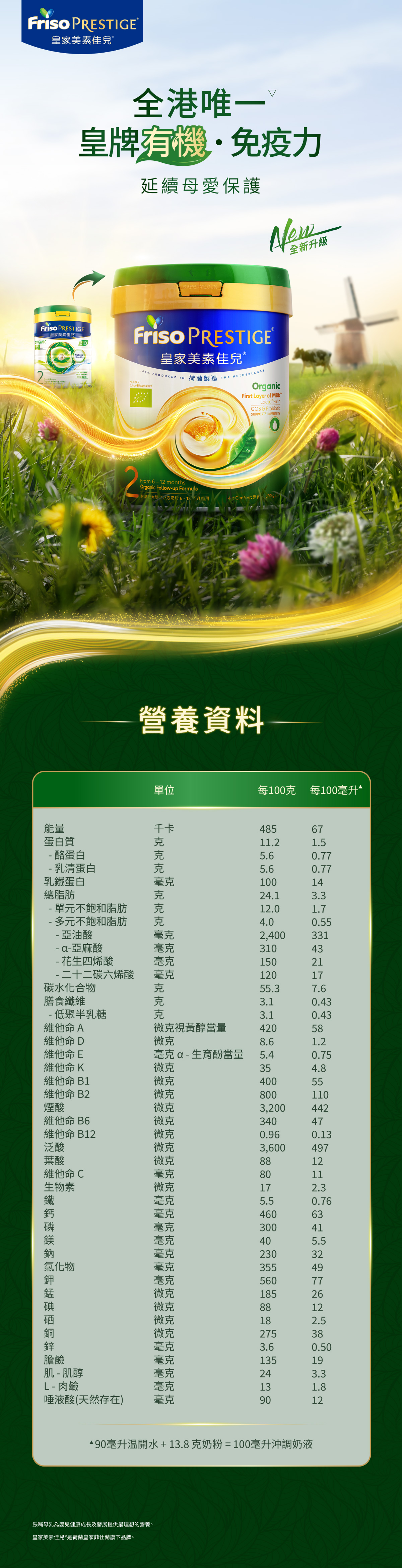 [3] 根據截至 2025 年 12 月的市場調查,有機荷蘭皇家美素佳兒®是香港市場上唯一奶源源自荷蘭有機自家農場的有機嬰幼兒配方奶粉產品。