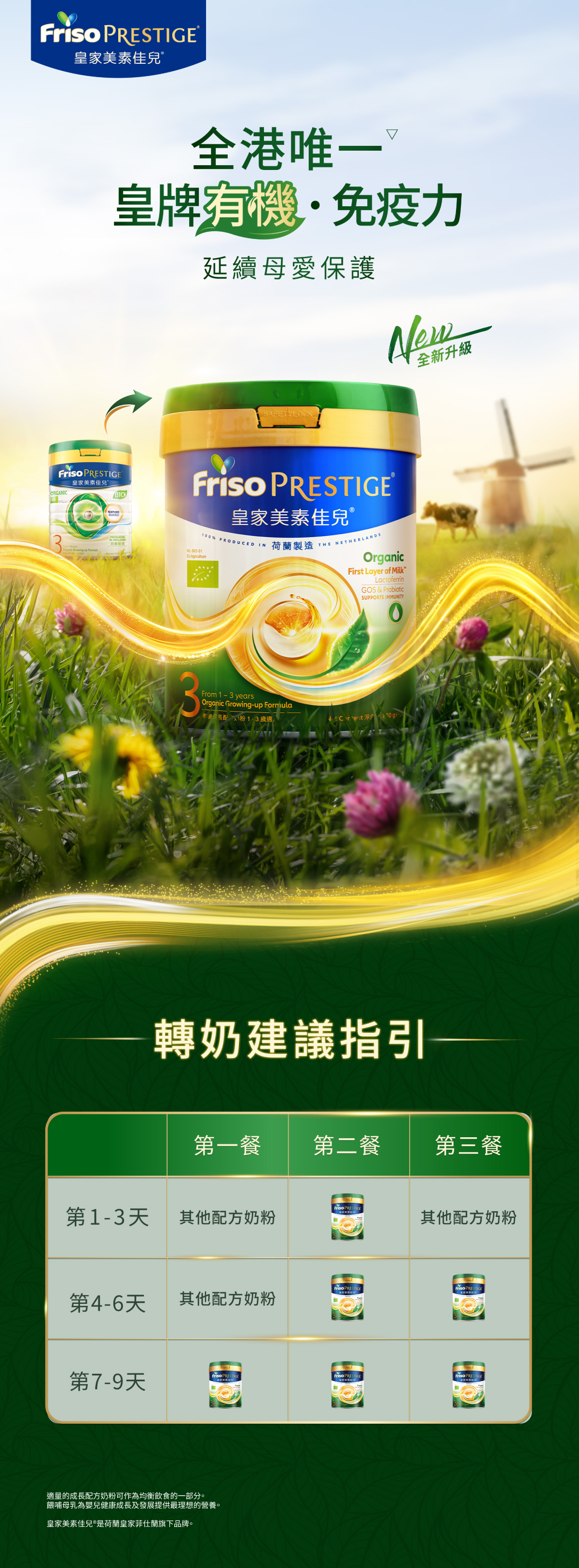 [3] 根據截至 2025 年 12 月的市場調查,有機荷蘭皇家美素佳兒®是香港市場上唯一奶源源自荷蘭有機自家農場的有機嬰幼兒配方奶粉產品。