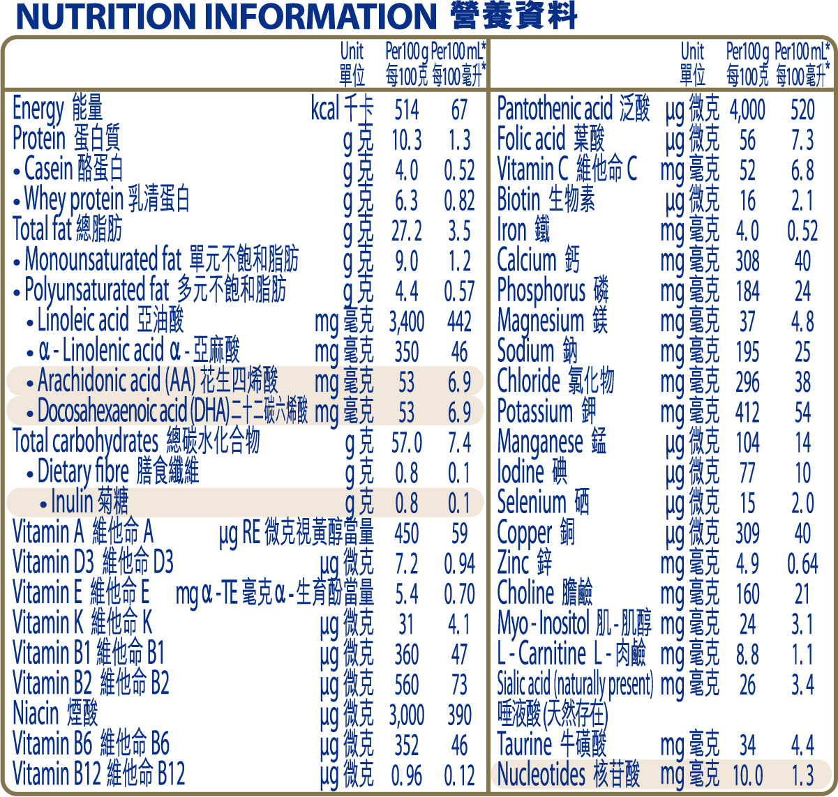 餵哺母乳為嬰兒健康成長及發展提供最理想的營養。首6個月的純母乳餵哺是嬰兒餵哺的最佳方式。此後,嬰兒應當在持續母乳餵哺的基礎上接受補充食品直至2歲或以上。母親攝取良好的營養有助維持足夠和優質的母乳量。在沒有需要的情況下引入部分或全奶瓶餵哺或給予其他補充食品及飲料可能會對餵哺母乳做成難以轉回的負面影響。如 閣下有餵哺母乳的困難或決定選擇使用母乳替代品前,應先諮詢醫護人員和考慮社會及經濟因素。請按指示小心使用、預備及存放母乳替代品或其他補充食品及飲料,因不適當或沒有需要的使用可能危害嬰兒健康。