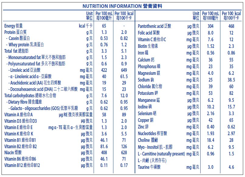 餵哺母乳為嬰兒健康成長及發展提供最理想的營養。首6個月的純母乳餵哺是嬰兒餵哺的最佳方式。此後,嬰兒應當在持續母乳餵哺的基礎上接受補充食品直至2歲或以上。母親攝取良好的營養有助維持足夠和優質的母乳量。在沒有需要的情況下引入部分或全奶瓶餵哺或給予其他補充食品及飲料可能會對餵哺母乳做成難以轉回的負面影響。如 閣下有餵哺母乳的困難或決定選擇使用母乳替代品前,應先諮詢醫護人員和考慮社會及經濟因素。請按指示小心使用、預備及存放母乳替代品或其他補充食品及飲料,因不適當或沒有需要的使用可能危害嬰兒健康。